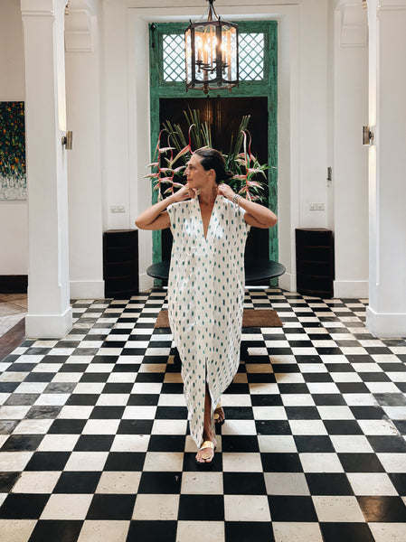 All pieces are handmade locally with love and care in Bangalore, India hence each unique kaftan may vary slightly from the next. Fabric colours also may vary from the photos and from batch to batch as this is a handmade process.