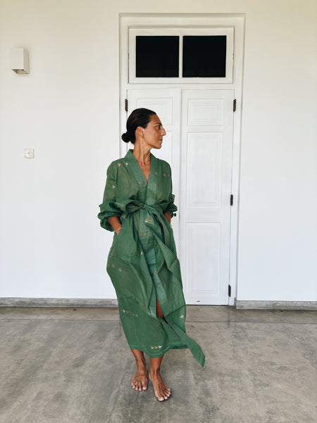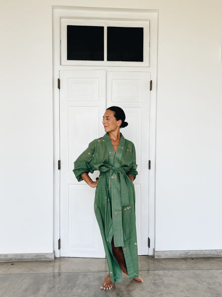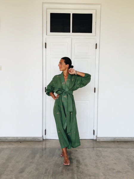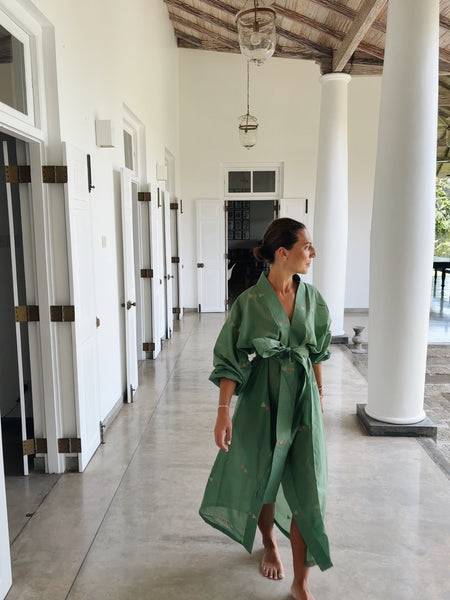 All pieces are handmade locally with love and care in Bangalore, India hence each unique kaftan may vary slightly from the next. Fabric colours also may vary from the photos and from batch to batch as this is a handmade process.