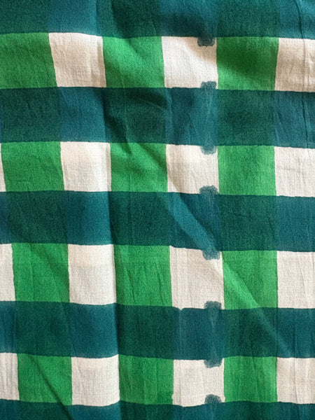 Uneven block printing on the back. Refer to the image. Please note that these are all part of the nature of hand block printing but these marks are a little less subtle than we'd like!